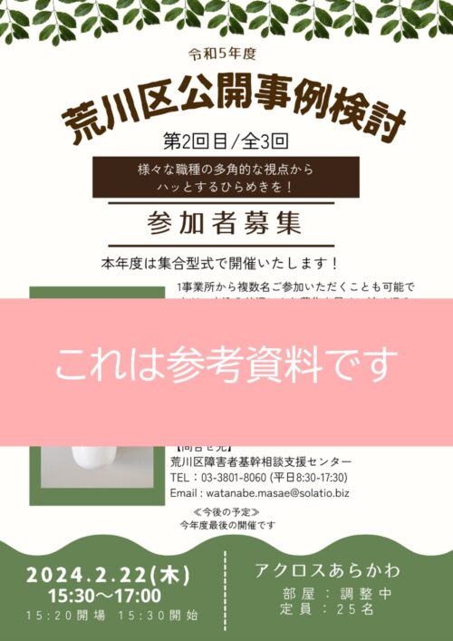 令和5年度第3回公開事例検討として2024年2月22日(木)に実施予定です。
