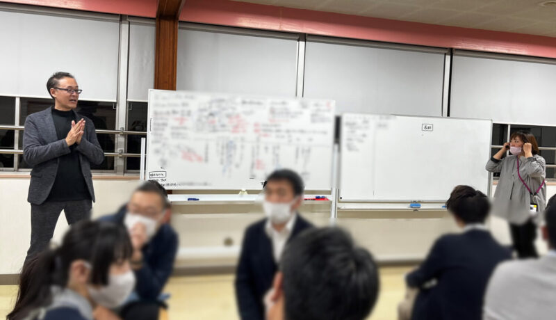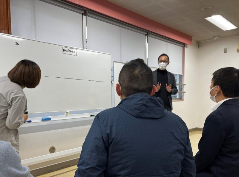 ファシリテーターは「おかべ理事長」、板書はソラティオ23の「かおりん」です。