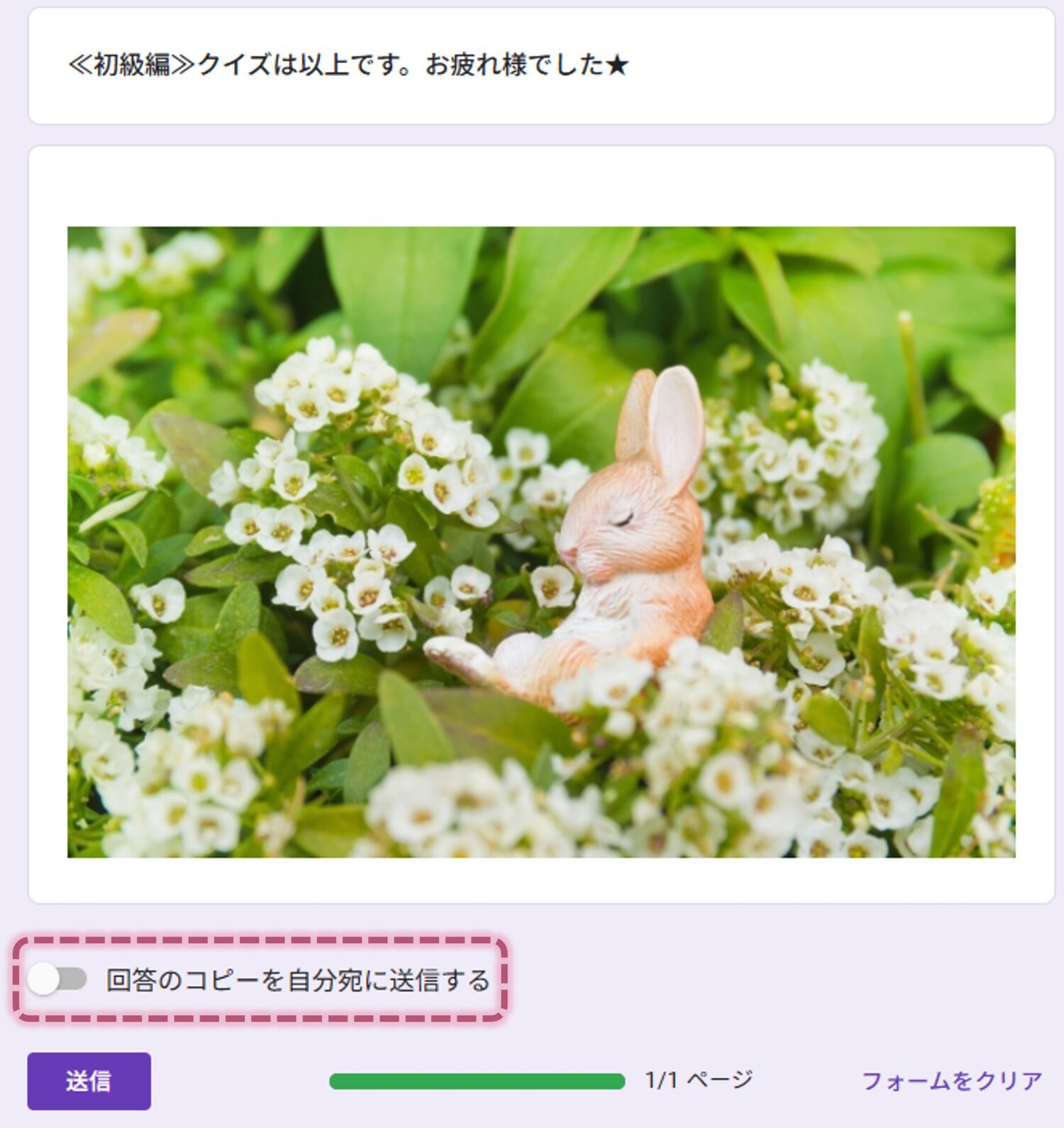 『回答のコピーを自分宛に送信する』をクリックしてから