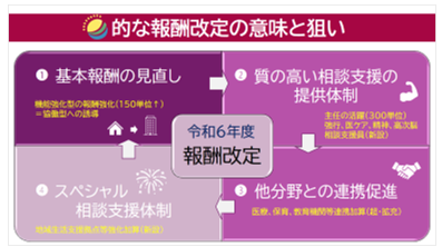 令和6年度の報酬改定が相談支援事業の抱える課題を解決し、未来に向かって取組むべき事項にリンクした改定であることが分かりますね。